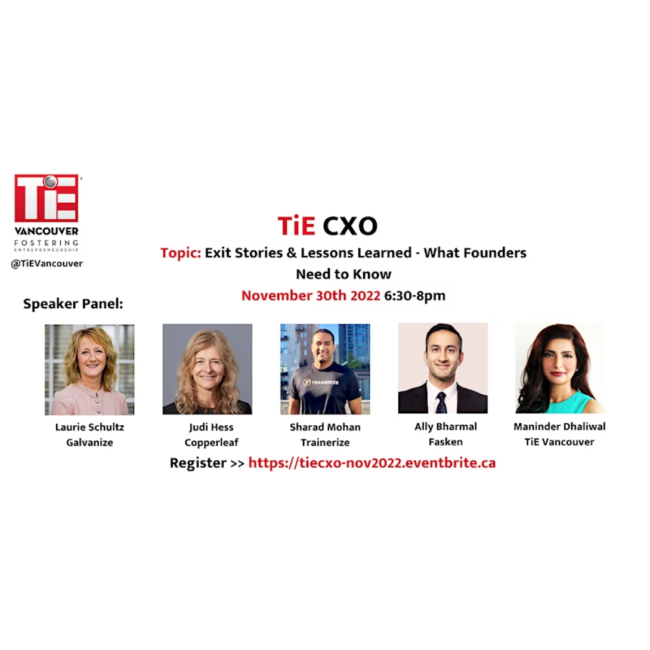 TiE CXO offers learning, mentoring and networking opportunities for operators in startups and scaleups, including workshops and working sessions featuring local and global experts. TiE CXO programming is offered to BC’s tech community at a not-for-profit basis.
